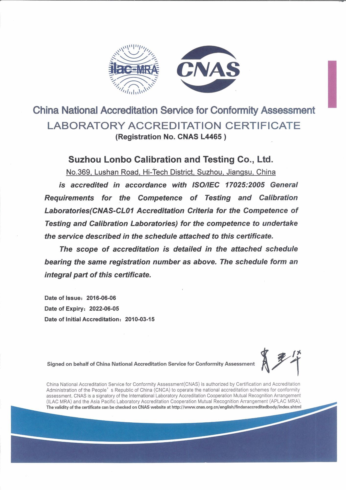 寧波朗博計量檢測有限公司是寧波計量檢測、寧波儀器檢測、寧波儀器校準、寧波計量檢測、寧波儀器校正、寧波儀器計量校驗的計量校準檢測技術服務公司。寧波朗博計量檢測有限公司屬于朗搏校準檢測集團公司,集團公司另外下轄蘇州朗博校準檢測有限公司和北京朗博校準檢測有限公司,另外在南京、揚州、南通、廣州東莞、山東濰坊、安徽合肥、越南北寧等地設置辦事機構。朗博校準檢測集團通過中國合格評定國家認可委員會(CNAS)及國防科技工業實驗室認可委員會(DILAC)認可與授權,專業從事計量校準、檢測(包含軍用設備檢測)和維修服務的綜合實驗室,可以開展900多個項目的校準和檢測技術服務,所出具的校準證書及檢測報告獲得國際實驗室認可合作組織多邊協議(ILAC-MRA)成員中48個國家和地區的認可。校準檢測,實驗室建有幾何量、熱工、力學、電磁、無線電、時間頻率、振動、聲學、光學、理化等專業校準實驗室。實驗室嚴格按照國家相關檢定規程、校準規范、國家標準或儀器說明書技術指標的要求等進行全面的校準檢測;實驗室的校準檢測工作完全滿足ISO/IEC17025和ISO9000的要求,實驗室所出具的第三方公正的校準證書及檢測報告獲得國際實驗室認可合作組織多邊協議(ILAC-MRA)成員中48個國家和地區的認可。